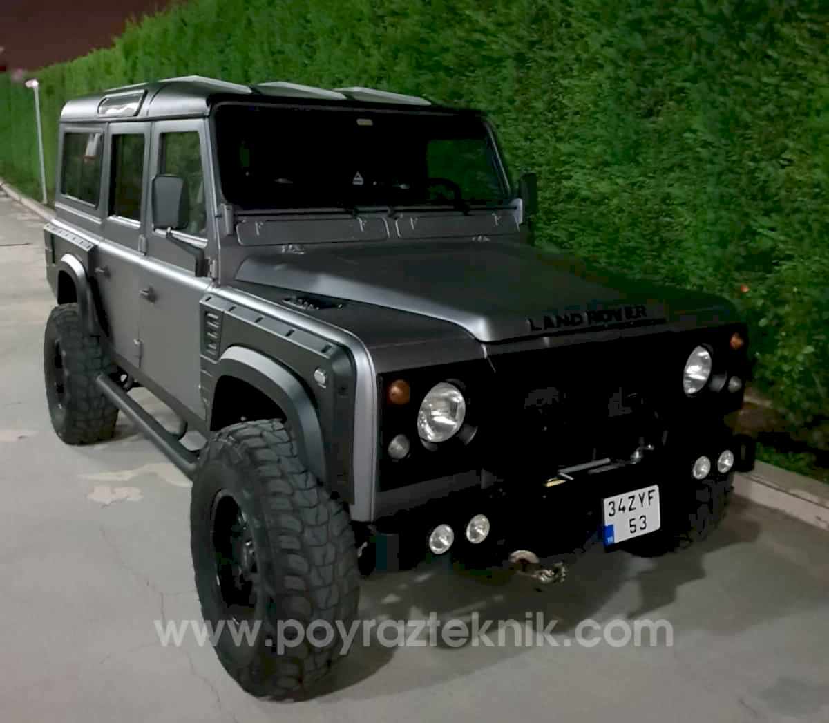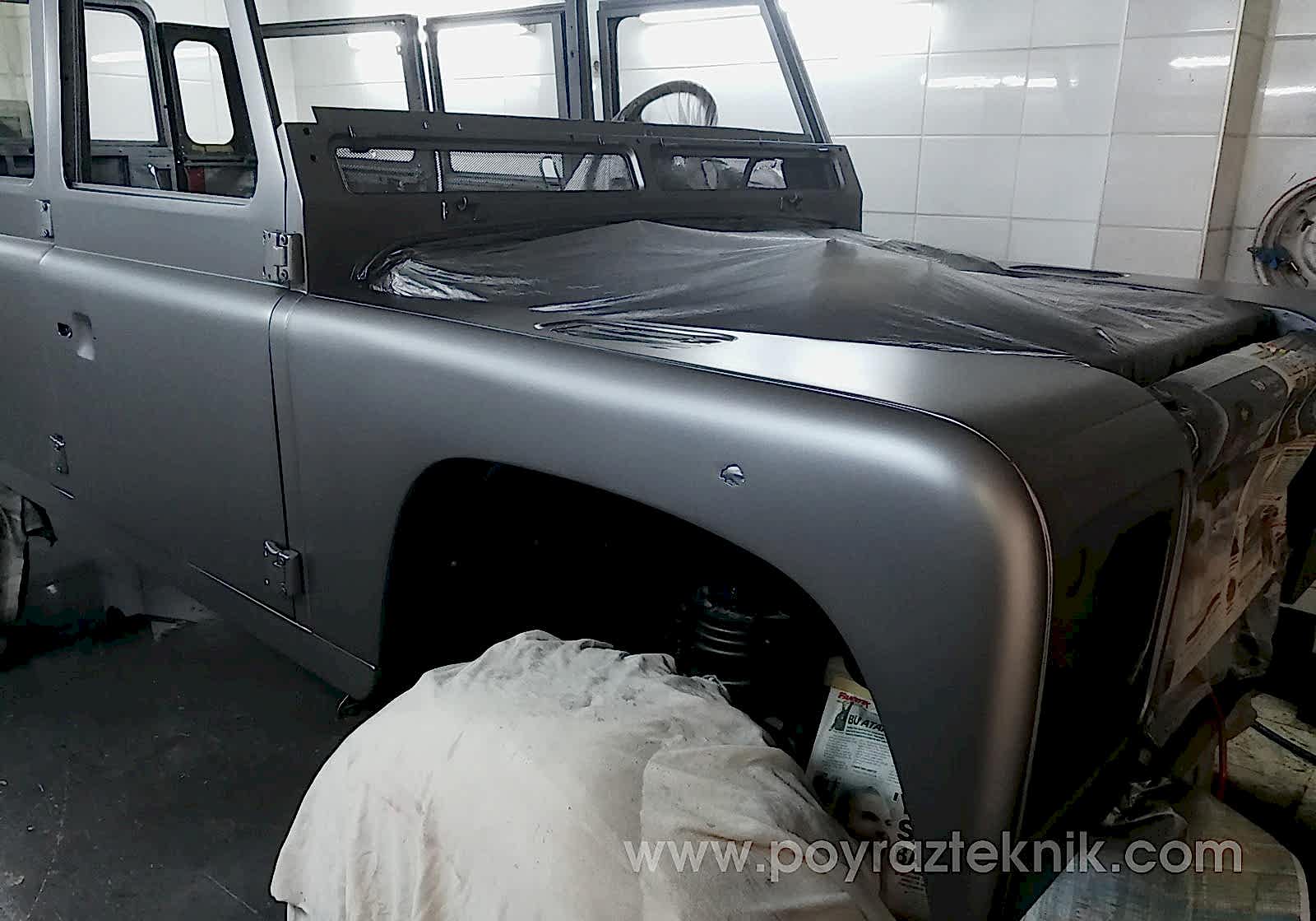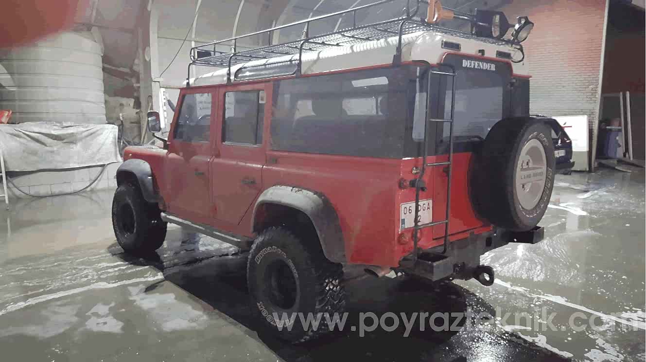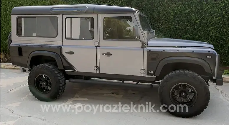 Tüm orjinal restorasyon işlemleri sonrasında kendi üretimimiz olan body kit (dodik), tampon, sinyal koruma hizmetleri set olarak verilmiştir. Uygun ölçülerde lastik ebatları ile daha sağlıklı kullanım, Land Rover Defender jant seçeneklerinden farklı jant seçenekleri ile olabildiğine ciddi sıra dışı görünüm hedeflenmiştir.