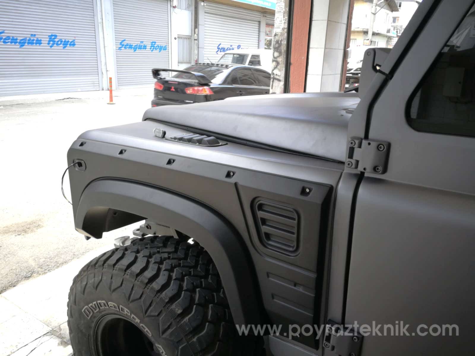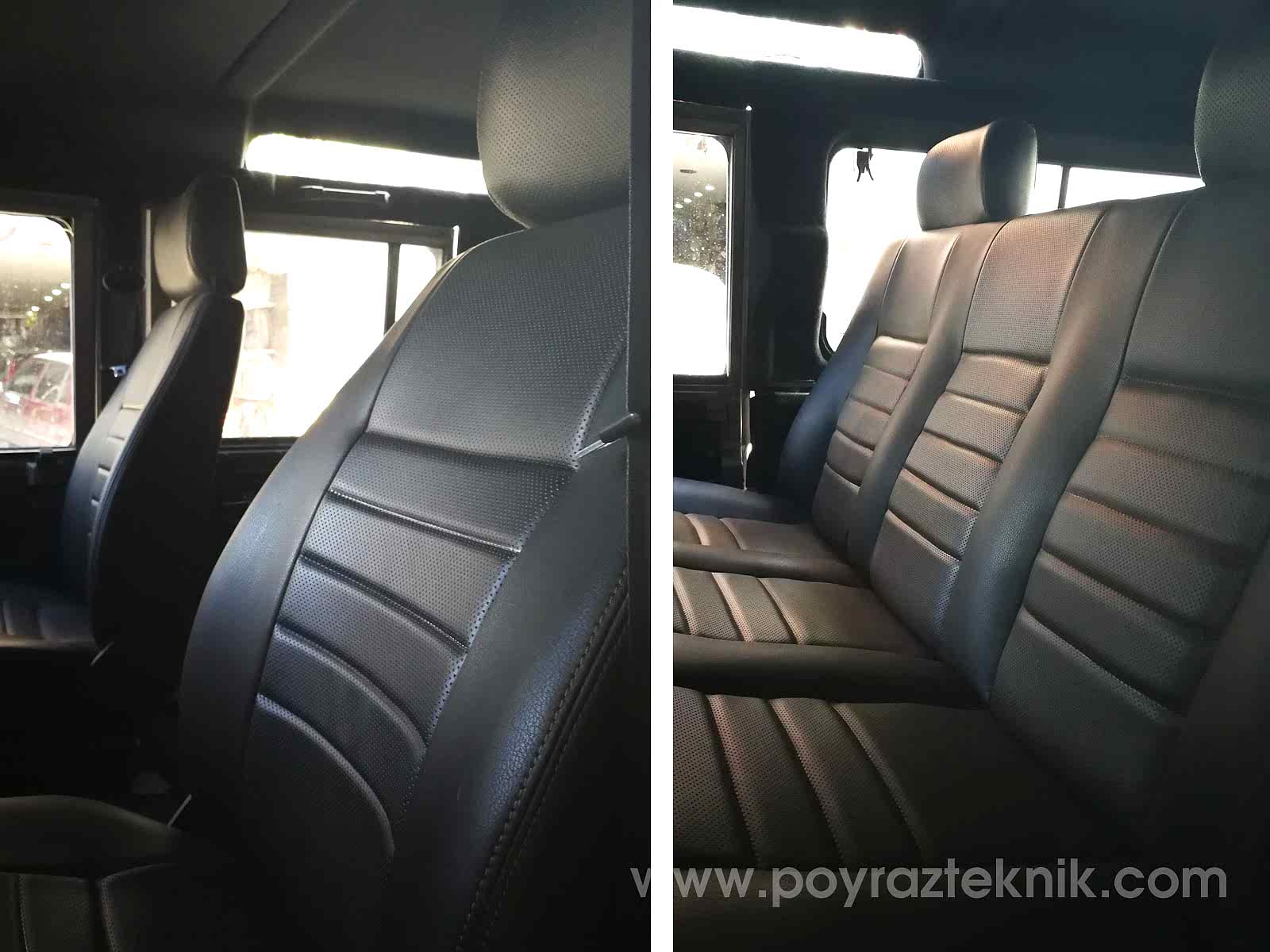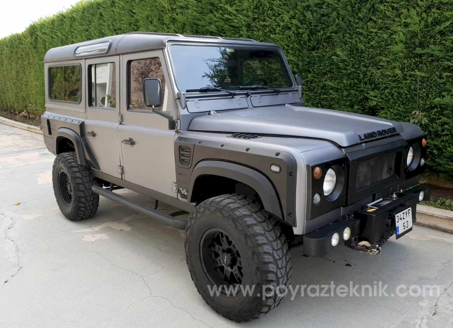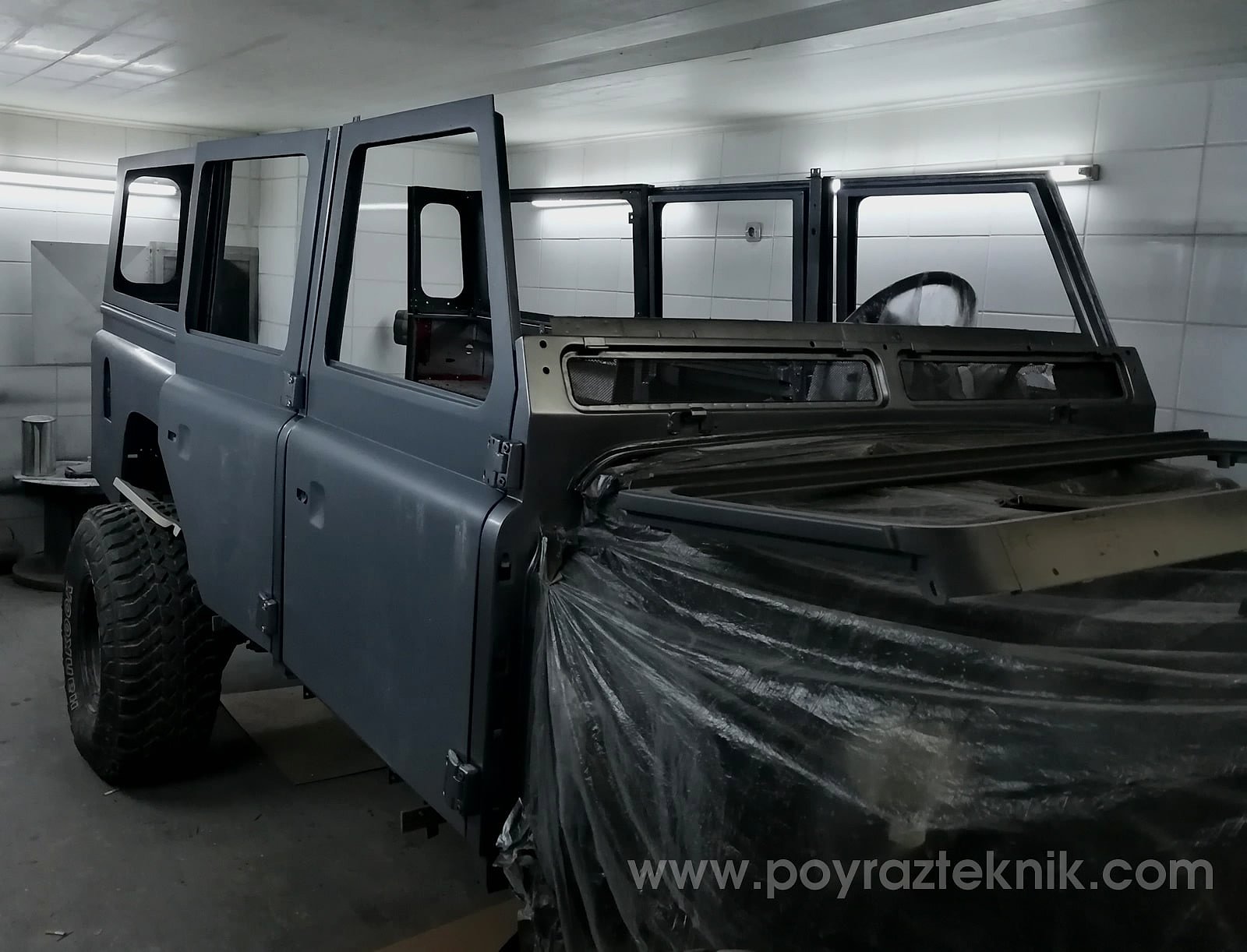 Tüm orjinal restorasyon işlemleri sonrasında kendi üretimimiz olan body kit (dodik), tampon, sinyal koruma hizmetleri set olarak verilmiştir. Uygun ölçülerde lastik ebatları ile daha sağlıklı kullanım, Land Rover Defender jant seçeneklerinden farklı jant seçenekleri ile olabildiğine ciddi sıra dışı görünüm hedeflenmiştir.