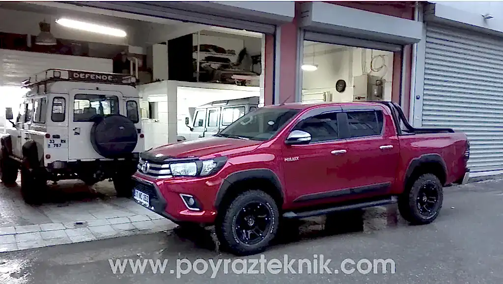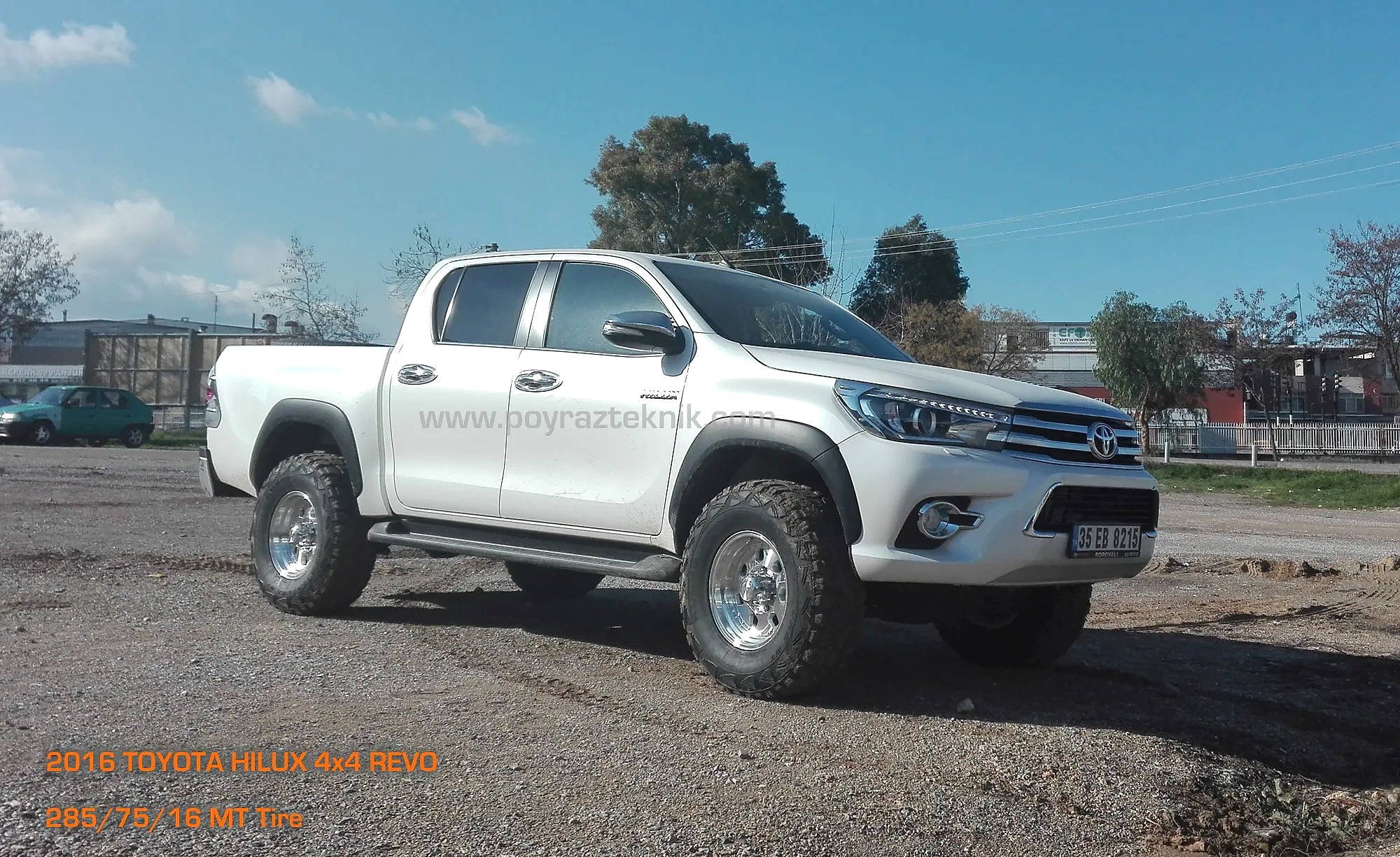 285/75/16 MT lastik, ofsetli off road jant, 10 cm yükseltme ve çeşitli uygulamalar, vb.